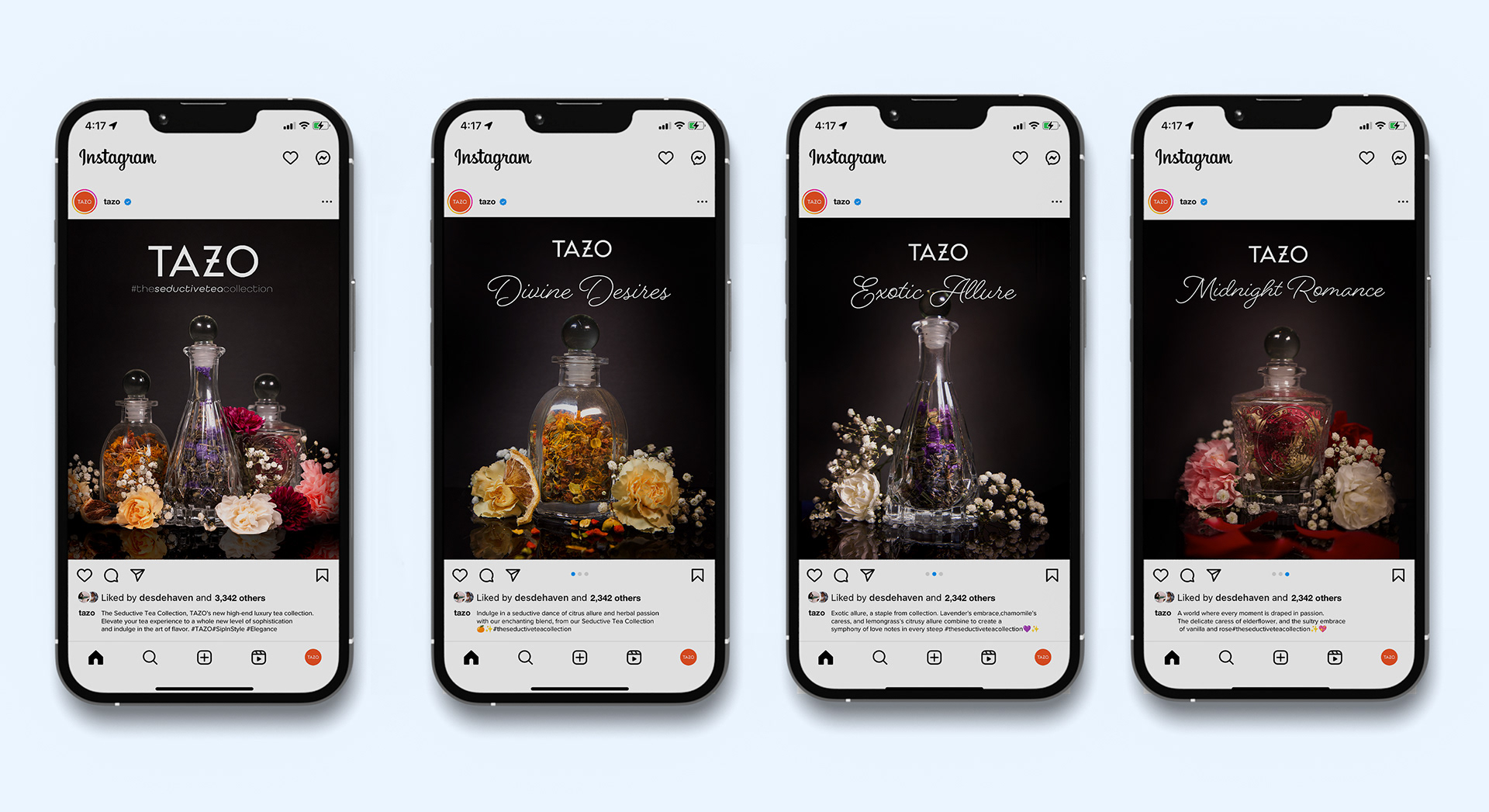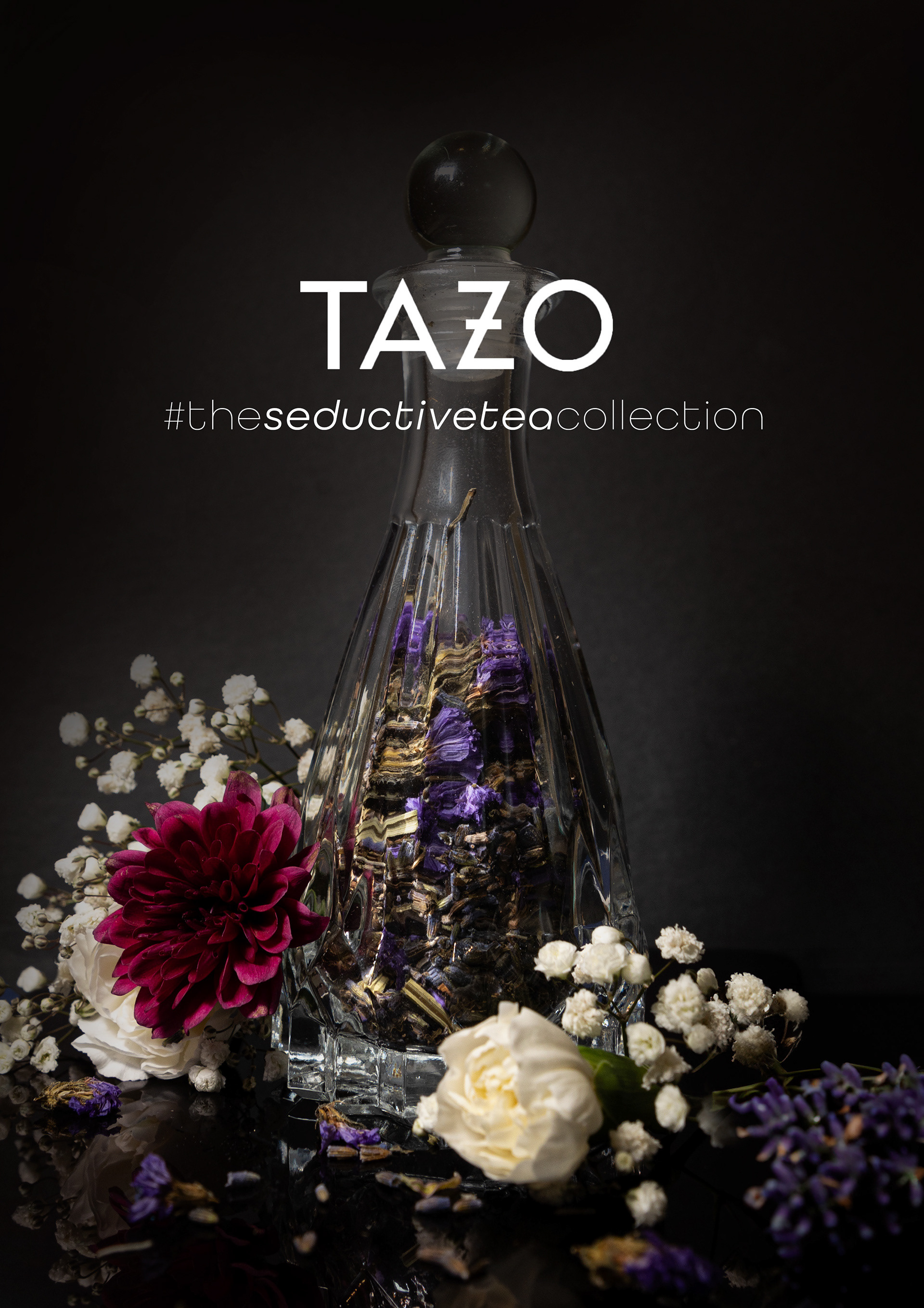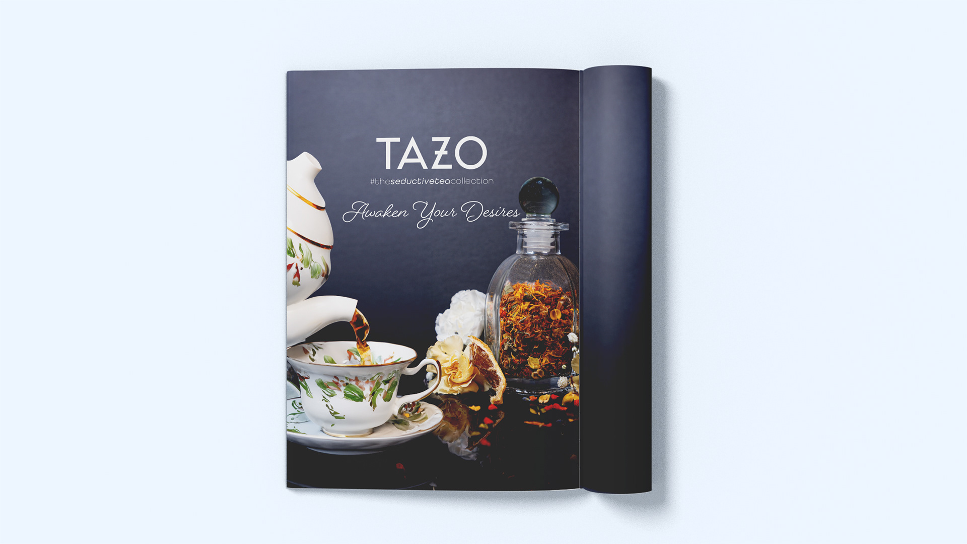 At Tazo, we've transformed tea into a symbol of sophistication and sensuality. Our Seductive Tea Collection campaign exudes elegance and allure. Our goal is to make you feel special from the moment you open our tea to the second it touches your lips. We invite tea enthusiasts from around the world to experience "The Seductive Tea Collection," which was photographed and art directed as part of a Consumer Product Campaigns class.